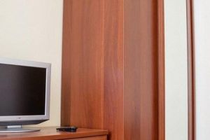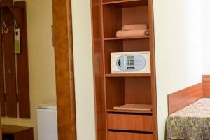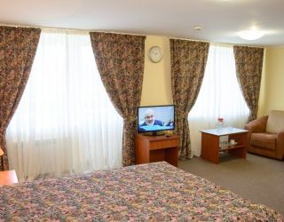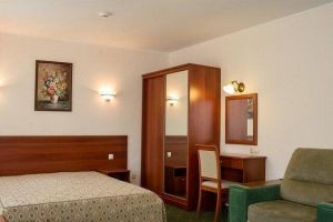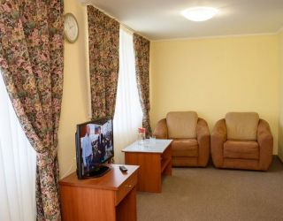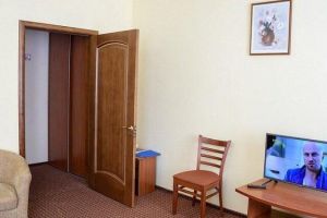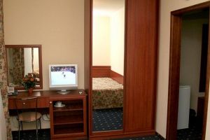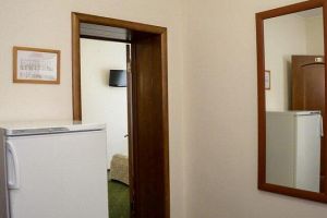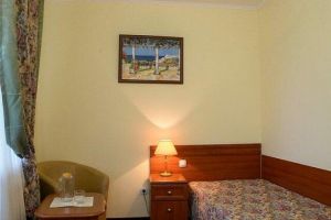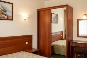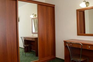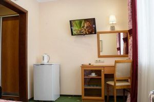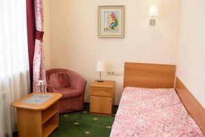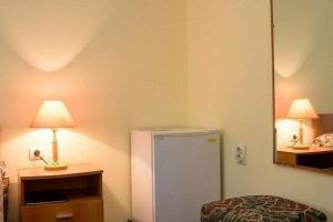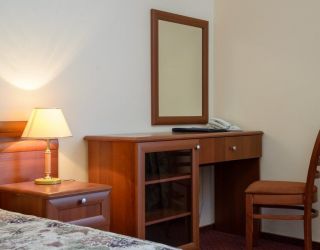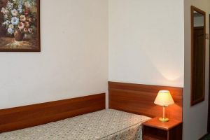 Комфортный номер со всеми удобствами рассчитан на проживание одного человека. В номере есть необходимый минимум для приятного отдыха: корпусная мебель, кровать с прикроватной тумбочкой, туалетный столик с зеркалом, стул, телевизор, холодильник, набор посуды, электрический чайник, телефон, предметы декора, щит для верхней одежды, полка для обуви, совмещенный санузел с душем
