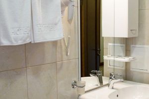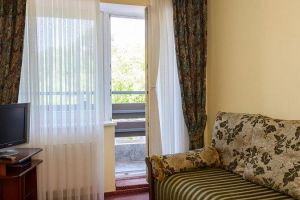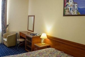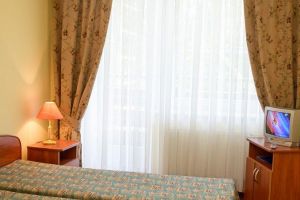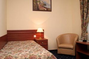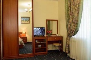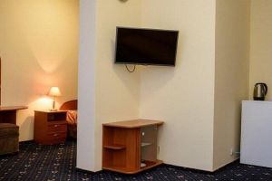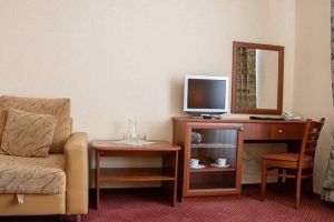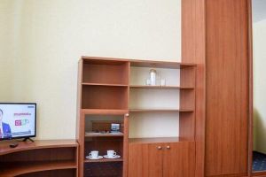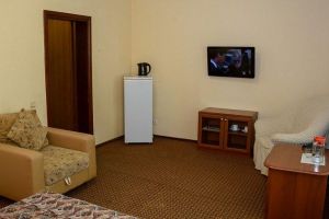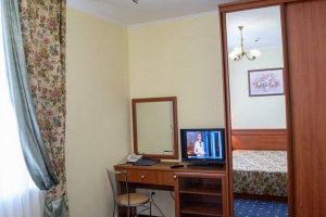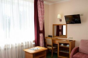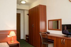 Комфортный номер со всеми удобствами рассчитан на проживание одного человека. В номере есть необходимый минимум для приятного отдыха: корпусная мебель, кровать с прикроватной тумбочкой, туалетный столик с зеркалом, стул, телевизор, холодильник, набор посуды, электрический чайник, телефон, предметы декора, щит для верхней одежды и полка для обуви. Совмещенный санузел с душем оснащен необходимыми предметами для личной гигиены.