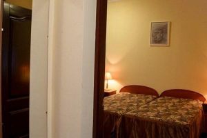 Двухкомнатный номер для двоих гостей с двумя кроватями и удобствами.