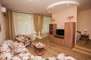 Комфортный просторный номер, расположен на 2-м этаже корпуса № 3, на первом этаже - физиопроцедуры, конференцзал, косметический кабинет.