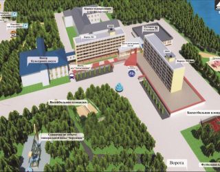 Волейбольная, футбольная и баскетбольные площадки, спортзал, тренажёрный зал, бильярд, пинг-понг, прокат спортивного инвентаря (лыжи, ролики, велосипеды, палки для скандинавской ходьбы)
