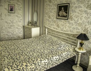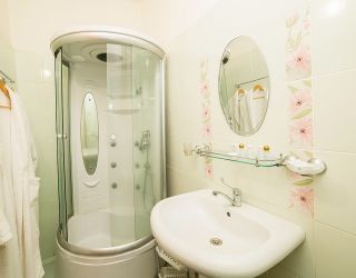 Коридор, ванная комната с WC и душевой кабиной, 1 спальня, гостиная с диваном.