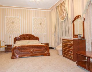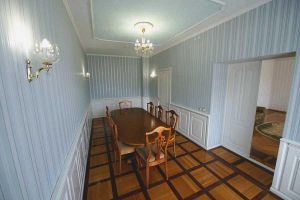 Коридор, ванная комната с WC, ванной и душем, спальня, гостиная, столовая, кухня с плитой.