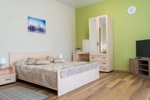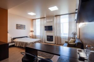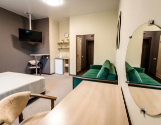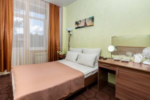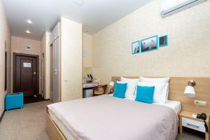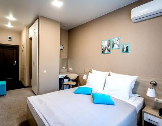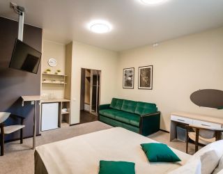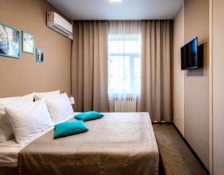 Уютный комфортабельный однокомнатный номер с двуспальной кроватью, оснащенный всем самым необходимым.