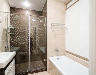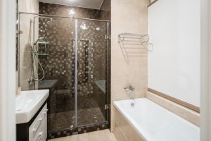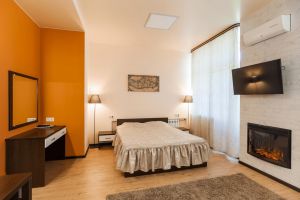 Кровать кинг сайз, душевая кабина, ванна, электрокамин - здесь есть всё для комфортного отдыха и наслаждения отпуском.