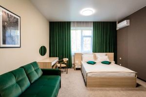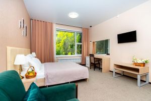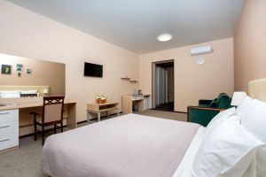 Современный дизайн и уютная атмосфера –отличительные черты этого номера, который состоит из двух комнат – гостиная и спальня. Номер расположен в главном корпусе санатория. Прекрасно подходит для семейного отдыха с одним ребенком или двумя детьми.