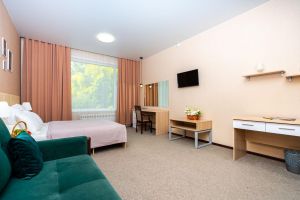 Номер расположен в главном корпусе санатория. Прекрасно подходит для семейного отдыха с одним ребенком или двумя детьми. С максимальным комфортом может разместиться до 4 человек.