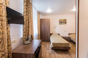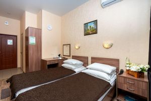 Уютный комфортабельный однокомнатный номер с двумя односпальными кроватями, оснащенный всем самым необходимым.