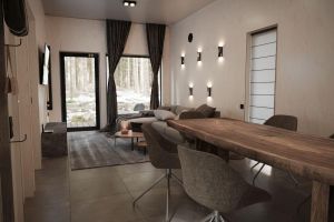Дизайнерский ремонт, панорамное окно и уютная атмосфера в окружении леса подарят вам яркие впечатления на долгое время.