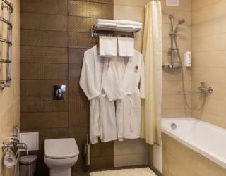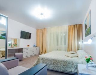 В комнате: двуспальная либо две 1,5-спальные кровати, шкаф для одежды, кондиционер, телевизор, холодильник, телефон, сейф. В ванной комнате: полотенца, дозаторы с мылом и шампунем. Гостям предоставляются халаты и тапочки.