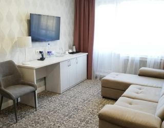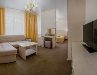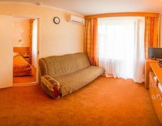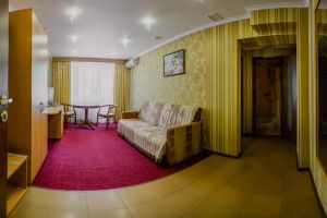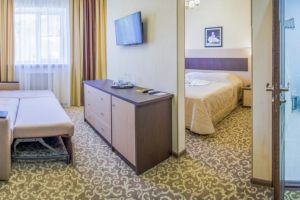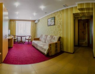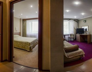 Двухкомнатный, в комнате разделены зоны спальни и гостиной. В номере: кондиционер, холодильник, телефон, сейф, ЖК телевизор, мини-бар с прохладительными напитками, чайник (чай, кофе). В ванной комнате: ванна с гидромассажем, теплый пол, фен, халаты, полотенца, дозаторы с мылом и шампунем.