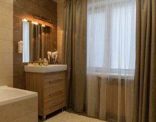 В номере: двуспальная кровать (трансформер), плазменный телевизор, шкаф для одежды, кондиционер, холодильник, телефон, сейф. В ванной комнате (3,8 кв.м.): ванная, фен, полотенца, индивидуальные парфюмерные наборы. Гостям предоставляются халаты и тапочки.