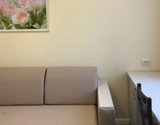 В комнате разделены зоны спальни и гостиной.