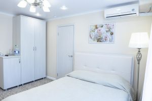 В спальне: двуспальная кровать или две 1,5 спальные кровати, телевизор. В гостиной: диван, шкаф для одежды, вентилятор, холодильник, телевизор, телефон, сейф. В ванной комнате: полотенца, индивидуальные парфюмерные наборы. Гостям предоставляются халаты и тапочки.