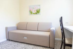 - зона отдыха с одним креслом и туалетным столиком,