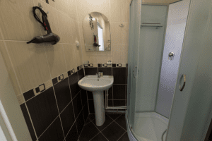 - 1-спальная кровать, кондиционер, телевизор, мини-холодильник, душевая кабина, туалет, фен
