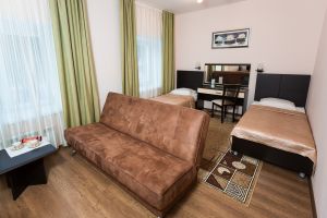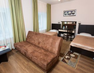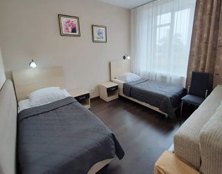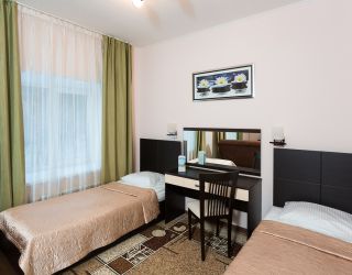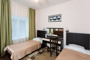 - 30 кв.м, две 1-спальные кровати, в некоторых номерах одна олутороспальная кровать, ТВ, Х, диван, с/у душ
