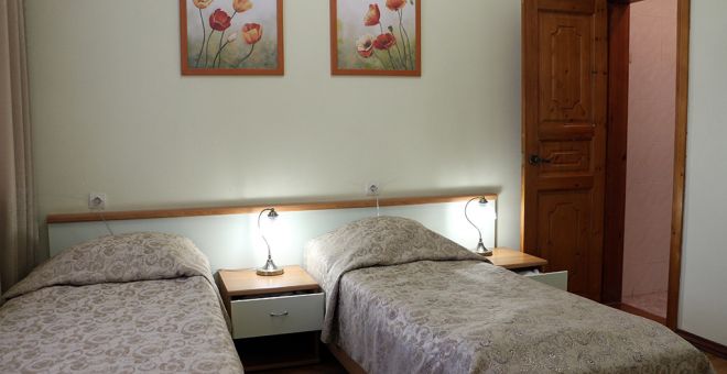 - 2 односпальные кровати, ТВ, холодильник, телефон, с/у, душ
