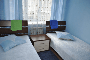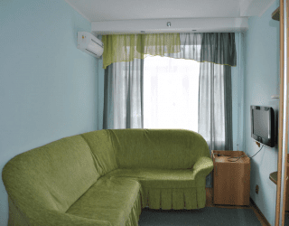 - Двуспальная или 2 односпальных кровати, 2 кресла-кровати, ТВ, холодильник, с/у с душем, кондиционер