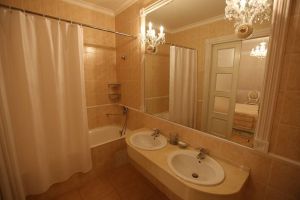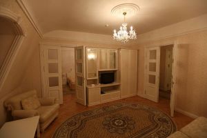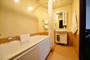 - с/у,два телевизора, телефон, ванная, напольный вентилятор, чайная посуда, электрочайник, фен, мини-холодильник.