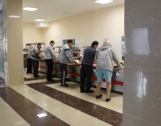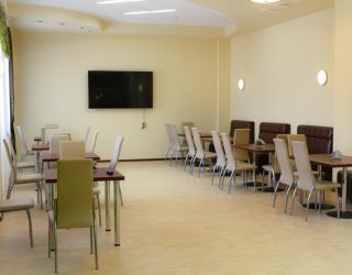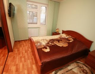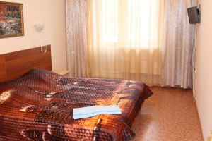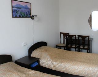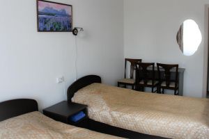 - три односпальные кровати, тумбочки, кресла, журнальный столик, телевизор, посуда, душевая и туалетная комната, встроенный шкаф для одежды, холодильник, чайник.