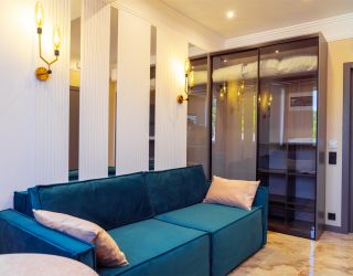 - Номер категории «Стандарт» представляет собой небольшую уютную студию с удобным раскладывающимся двуспальным диваном. В кухонном блоке размещена вся необходимая техника - варочная панель, вытяжка, микроволновая печь, электрический чайник, барный холодильник; а также посуда и столовые приборы. Санузел достаточно просторный, вмещает душевую кабину, подвесной унитаз, бойлер, стиральную машину, фен и полотенцесушитель. При заезде комплектуется гигиеническими принадлежностями. Smart TV, стабильный быстрый Wi-Fi, сплит-система, сейф, шторы blackout. Всё, чтобы Вам было комфортно и удобно.
