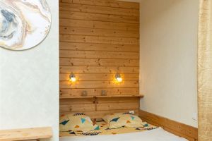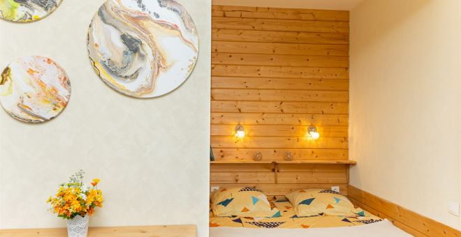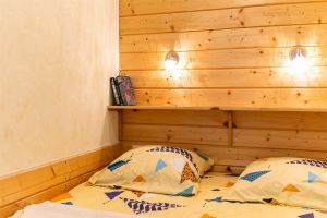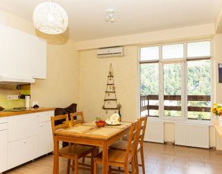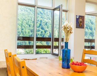 - Двуспальная кровать и двухъярусная кровать, стиральная машина, микроволновка, плита, холодильник, балкон с панорамным видом на горы.