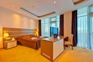 В номере расположена спальня с удобной двухспальной кроватью, гостиная с мягкой мебелью, ванная комната,балкон с видом на море и галечный пляж.