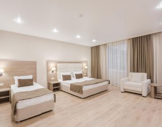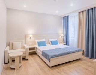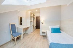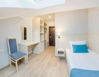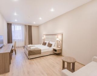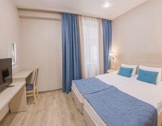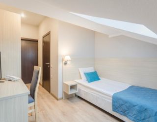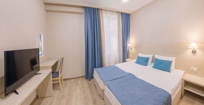 - Комфортный однокомнатный номер с одной двуспальной или двумя односпальными кроватями.