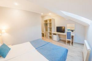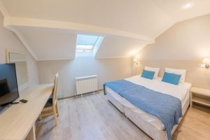 - Уютный однокомнатный номер с одной двуспальной или двумя односпальными кроватями и мансардным окном.