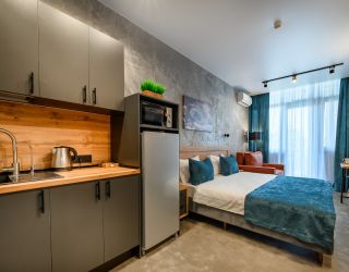 - кровать King size с ортопедическим матрасом, собсвенная мини-кухня, х, тв, душ.