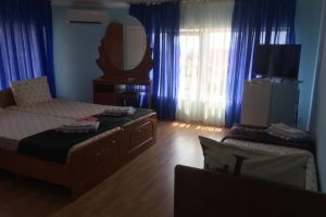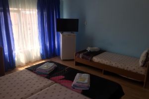 - Двуспальная кровать+односпальная или три односпальные кровати, шкаф, тумбочка, стол, телевизор, холодильник, сплит-система, с/у совмещен с душем (бортики),Wi-Fi.