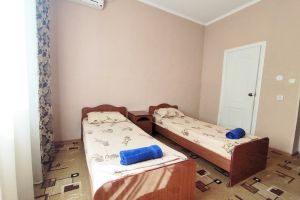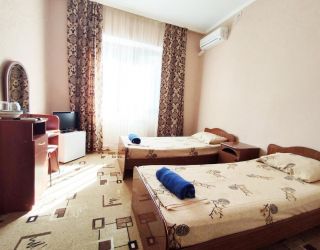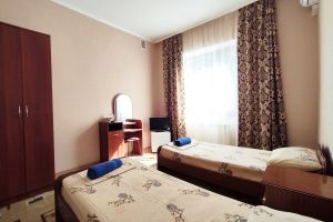- 2 двуспальные кровати, шкаф, туалетный столик, стол, кондиционер, телевизор, холодильник