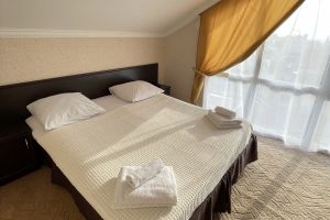 - Двусп. кровать и 2 односп. кровати, с/у с душем, ТВ, кондиционер, холодильник, сейф, фен.
