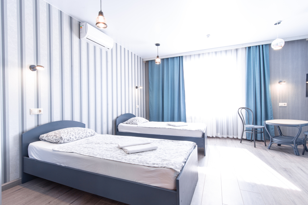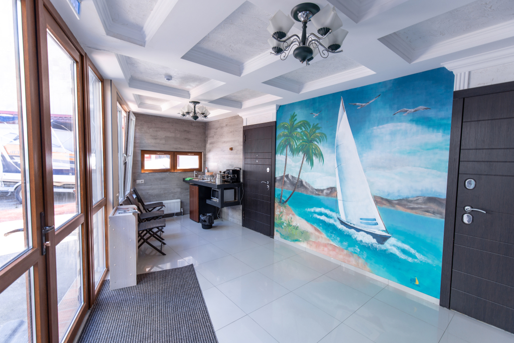 Гостиница «Экипаж» располагается на 3-м этаже комплекса «Центр Парусного спорта». В пешей доступности расположен парк «Дендрарий». На территории — финская и русская баня, оборудованный пляж, открытый бассейн, тренажерный зал. Номерной фонд состоит из номеров разного уровня комфорта. В каждом номере — сплит-система, плазменный телевизор, холодильник, чайник, микроволновая печь.