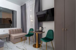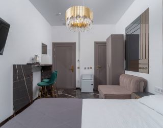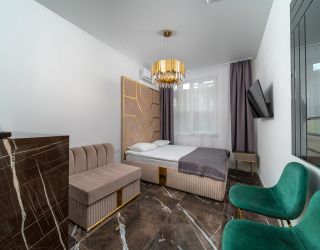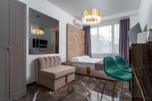 - Номер «Стандарт» предназначен для проживания одного или двух человек. В номере полноценная двухспальная кровать с ортопедическим матрасом, дополнительное спальное место (кресло-кровать), современная мебель и техника с функциональной ванной комнатой. Дизайнерский ремонт и внимание к деталям делают каждый номер действительно уникальным и уютным.