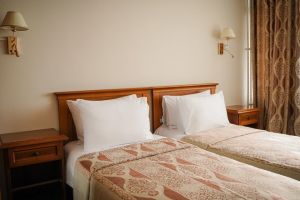 Номер категории Стандарт- это просторный , уютный однокомнатный номер с собственной ванной комнатной и принадлежностями гигиены. В номере прекрасно может разместиться до трёх человек. В номере также есть дополнительное место для третьего гостя.Количество комнат 1-комнатныйНомер категории "Комфорт" рассчитан на комфортное размещение двоих гостей. Интерьер оформлен в спокойных тонах поэтому номера не похожи друг на друга. Номер площадью 25 кв.м. состоит из спальни и ванной комнаты. В ванной комнате санузел, душ, комплект полотенец, средства для личной гигиены. В спальне: двуспальная кровать(или две отдельные кровати),прикроватные тумбочки, журнальный столик, шкаф для одежды, холодильник, система автоматического кондиционирования и отопления. Номер подходит для размещения гостей, которые путешествуют с детьми.