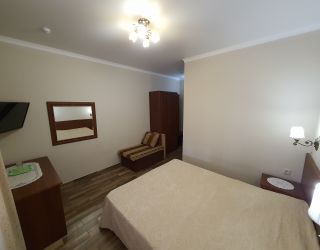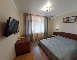 - Двуспальная кровать, телевизор с плоским экраном, сплитсистема, собственная ванная комната, холодильник, фен.