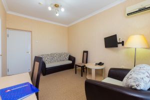 - С/у ванна и душ, ТВ, К, Х, тел, 2 спальни, гостинная, мини-кухня, балкон