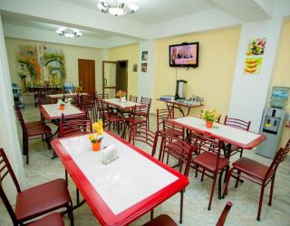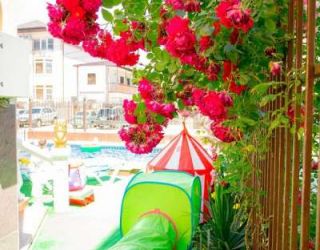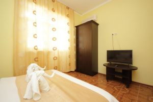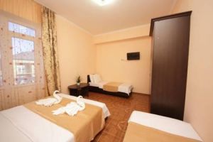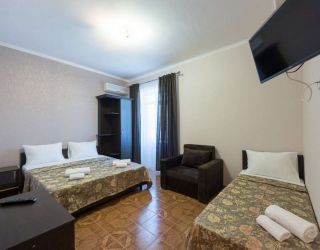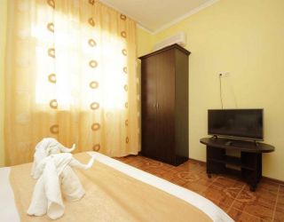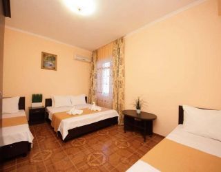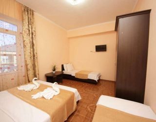 Отличная гостиница за эти деньги! В номерах кондиционеры, и чистенько. ТВ и Wi-Fi разумеется. В цоколе есть столовая, для завтрака вполне подходит! Обедать лучше всего в столовых в центре, а ужинать во дворе отеля. Столики и шатры от гостиницы, шашлыки от местных мастеров за адекватные деньги, алкоголь ваш! Плюс каждый вечер культурная программа в одной из гостиниц на этой улице! То есть ваши дети каждый вечер будут развлекаться! Удалённость от пляжа, полностью компенсируется чистотой района