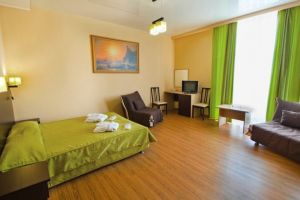 Количество комнат 1-комнатныйВозможно размещение 2-х человек на основных местах + 1 дополнительное место.