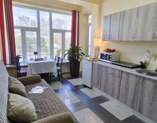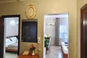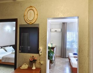 Отдыхаем в данный момент, отель понравился. Чисто, хороший ремонт, уютно. У нас двухкомнатный номер с кухней, вся посуда новая и сковорода и две кастрюли, мы с детьми, поэтому это важно для нашей семьи. У отеля своя территория с бассейном, здесь тенёк от деревьев и это очень приятно в жаркие дни. Детская площадка, лифт, хорошая столовая. До моря 10 минут. Полотенца меняют каждые три дня, уборка по требованию. Тихое спокойное место для отдыха с детьми, в других отелях музыка орёт с утра и до вечера, а у нас этого,слава богу нет