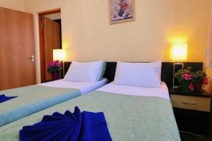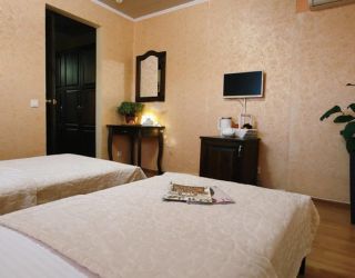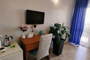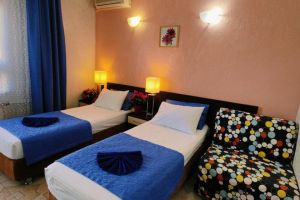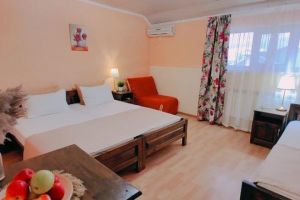 Прекрасный отель за небольшой прайс. Здание хорошее, ремонт достаточно современный. В номерах комфортно, чисто, аккуратно и прибрано. Сервис на высоте – нам, молодожёнам, сделали подарок, что было достаточно неожиданно и приятно. Также в номерах есть кондиционеры. При отеле есть бассейн, разделенный на детскую и взрослую части. Сам бассейн с подогревом. Также есть мангальная зона, на заднем дворе. Как приятный бонус – столовая на цокольном этаже. Большие порции, отличный вкус, приятные цены. Небольшой продуктовый магазинчик в трёх шагах. До местного центра развлечений, Параллии, пять минут спокойным шагом, при этом звукоизоляция на уровне. Замечательное место, обязательно вернёмся именно сюда