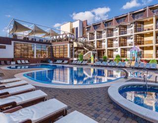 Удобная локация - рядом спорткомплекс и городской пляж. Наличие лифта. Завтрак и обед в формате шведского стола, большой временной диапазон завтрака и обеда. Свежая еда, большой ассортимент блюд. Ориентация на здоровое питание. Дружелюбный персонал. Бесплатная парковка отеля. Вид из окна на бассейн. Большой бассейн.