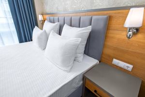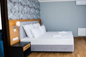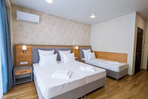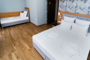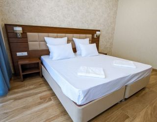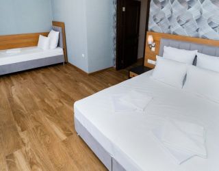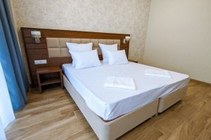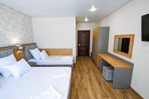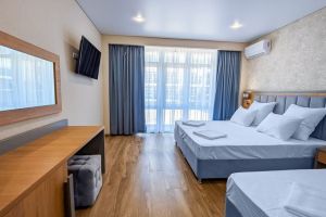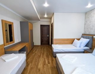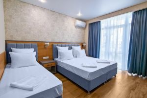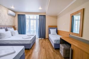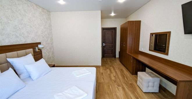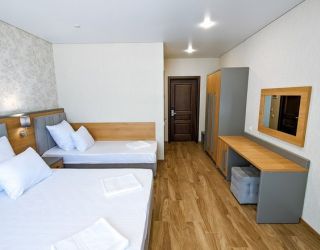 Номерной фонд разного уровня комфорта и вместимости расположился в 4-этажном здании. В комнатах установлена удобная мебель для сна, есть шкаф, прикроватные тумбы, телевизор со спутниковыми каналами, мини-холодильник, сейф, кондиционер. Санузел индивидуальный, с душем, туалетными принадлежностями и феном. На территории отеля работает ресторан.