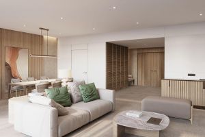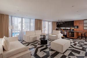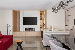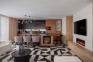 • Комфортабельные апартаменты оформлены в современном стиле и оснащены самыми современными удобствами. Вас ждёт просторная спальня с двумя двуспальными кроватями, диваном и двумя телевизорами, а также полностью оборудованная кухня и ванная комната. Вам не придется ни о чем беспокоиться, так как все необходимое уже имеется в ваших роскошных апартаментах.
