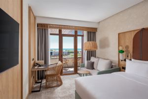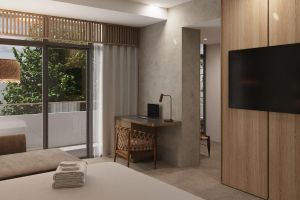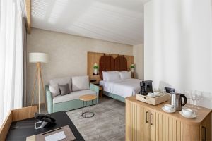 Стильные и по домашнему уютные, двухкомнатные номера категории Premium Room with balcony с отдельными спальней и гостиной расположены на втором этаже основного здания. Комфортная плетеная мебель на балконе и шезлонги украсят ваш отдых во время принятия солнечных ванн не выходя из номера. В гостиной предусмотрены рабочее место, зона отдыха, мини - кухня и обеденная зона.