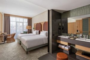 • Двухместный номер Deluxe Twin - уютный островок спокойствия на берегу Черного моря.Мы создали утонченный аутентичный дизайн, а также позаботились о том, чтобы каждая деталь в номере соответствовала самым высоким ожиданиям. Балкон с видом на бассейн – идеальное место для принятия солнечных ванн или приятного времяпровождения в кругу семьи. Неповторимая атмосфера и качественный отдых ждут вас! В номерах косметика от бренда Acqua Di Parma.В номере 2 основных места. Возможно дополнительно разместить одного ребенка до 5 лет включительно на имеющихся в номере местах бесплатно. Для детей более младшего возраста предоставляется детская кроватка.В номере две односпальные кровати.На парковке отеля предусмотрены зарядные станции для электрических автомобилей, обеспечивая удобное и быстрое пополнение заряда для всех владельцев электромобилей.