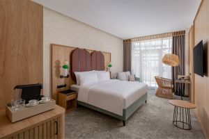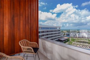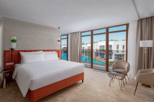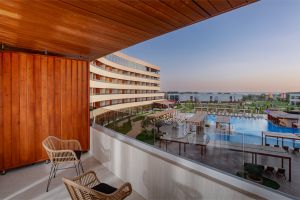 • Уютный стильный номер, оснащенный балконом, с которого открывается впечатляющий вид на бассейн и море. Здесь всё создано для комфорта наших гостей: стильная мебель, интересные дизайнерские решения, современная техника, полностью оборудованная ванная комната, а также балкон с плетеной мебелью и шезлонгом.