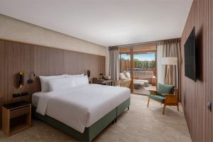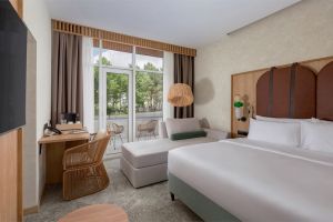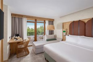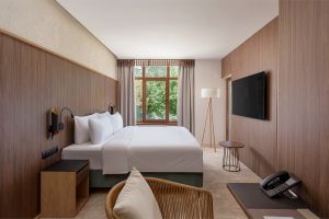 Номер оснащен современной техникой, а из окна открывается прекрасный вид на территорию отеля, так что у вас есть  возможность наслаждаться восхитительными пейзажами, не выходя из своего уютного жилища.